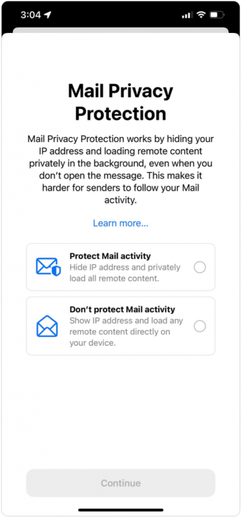Mail Privacy Protection stops senders from using invisible pixels to collect information about the user. [It prevents] senders from knowing when they open an email, and masks their IP address so it can’t be linked to other online activity or used to determine their location.